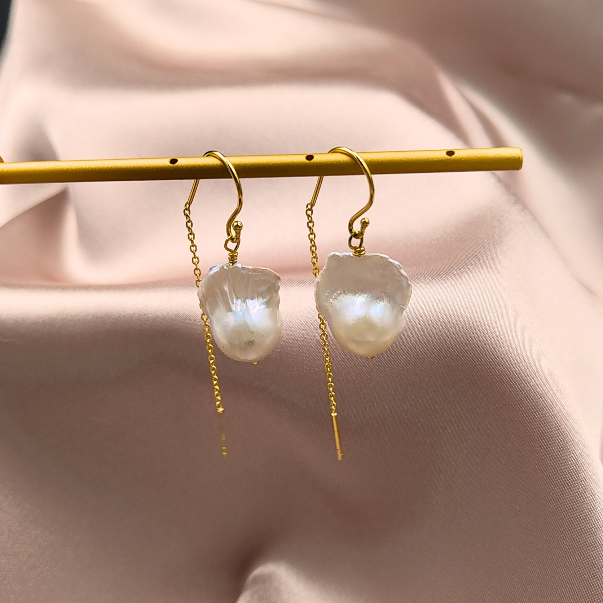 Vil du skille dig ud og samtidig fremhæve din naturlige skønhed? Natacha-øreringene er det perfekte valg! Med deres klassiske krog, fine kæde og en betagende barok ferskvandsperle som vedhæng får du et smykke, der ikke kun er unikt – det er en hyldest til din individualitet. Hver perle har sin egen organiske form og perlemorsglans, som gør, at ingen to par er ens. Det er som at bære et lille kunstværk!